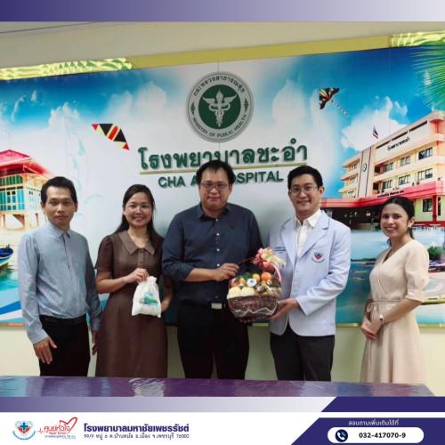 ทีมศูนย์หัวใจ โรงพยาบาลมหาชัยเพชรรัชต์ นำโดย นพ.กัญสพัฒน์ พงศ์หัตถกิจ เข้ามอบกระเช้าสวัสดีปีใหม่ 2568 แก่นายแพทย์ประกาศิต ชมชื่น ผู้อำนวยการโรงพยาบาลชะอำ และแพทย์หญิงน้ำฝน ทรัพย์คิรี หัวหน้าอายุรแพทย์ พร้อมคณะแพทย์อายุรกรรม เพื่อขอบคุณที่ให้ความไว้วางใจ ศูนย์หัวใจ ได้ดูแลรักษา รับส่งต่อคนไข้กลุ่มโรคหัวใจ และสานสัมพันธไมตรีอันดีงามในการช่วยเหลือดูแลคนไข้ซึ่งกันและกัน ในวันที่ 3 มกราคม 2568