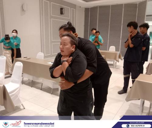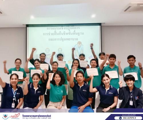 วันที่ 18 มิถุนายน 2568 นำทีมโดยแผนกฉุกเฉินโรงพยาบาลมหาชัยเพชรรัชต์ ได้มีการอบรม CPR Training หลักสูตร "การฟื้นคืนชีพขั้นพื้นฐาน Basic Life Support (BLS) และการใช้เครื่องกระตุกหัวใจด้วยไฟฟ้าชนิดอัตโนมัติ (AED)” ให้กับ พนักงานบริษัท Talay Hotel & Villa, Cha Am เพื่อให้กลุ่มพนักงานได้มีความรู้และทักษะในเรื่องการปฐมพยาบาล และการช่วยฟื้นคืนชีพขั้นพื้นฐาน สามารถช่วยเหลือผู้ที่ได้รับบาดเจ็บ หรือภาวะฉุกเฉินต่างๆ ให้พ้นจากอันตรายได้อย่างถูกต้อง และมีประสิทธิภาพก่อนนําส่งโรงพยาบาล ซึ่งจะเป็นการลดความรุนแรงและความสูญเสียที่อาจเกิดขึ้น